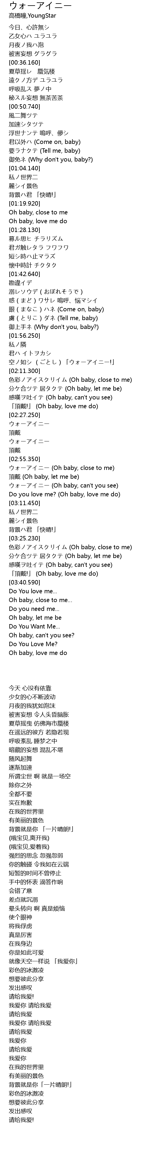 | [02:56.300] | ウォーアイニー (Oh baby, close to me) |