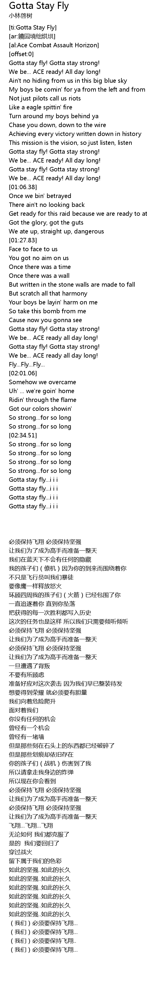 | [00:59.81] | Gotta stay fly! Gotta stay strong! |