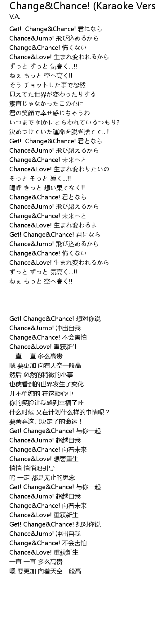| 歌曲 | Change&Chance! (Karaoke Version) |