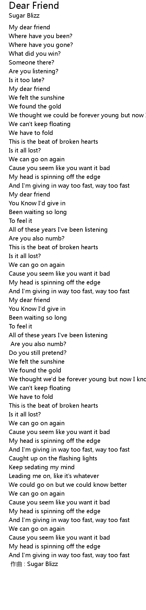| 歌曲 | Dear Friend |