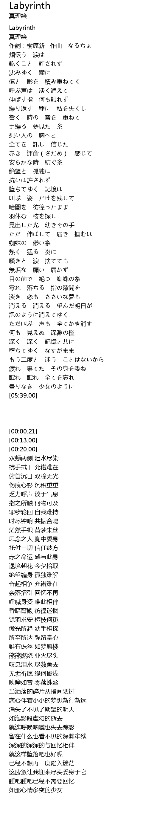 | [00:00.21] | Labyrinth |