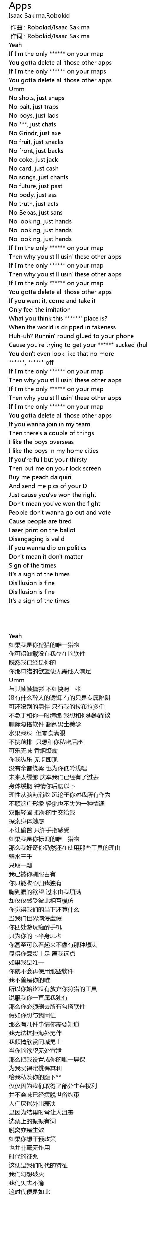 | [00:01.000] | 作词 : Robokid/Isaac Sakima |