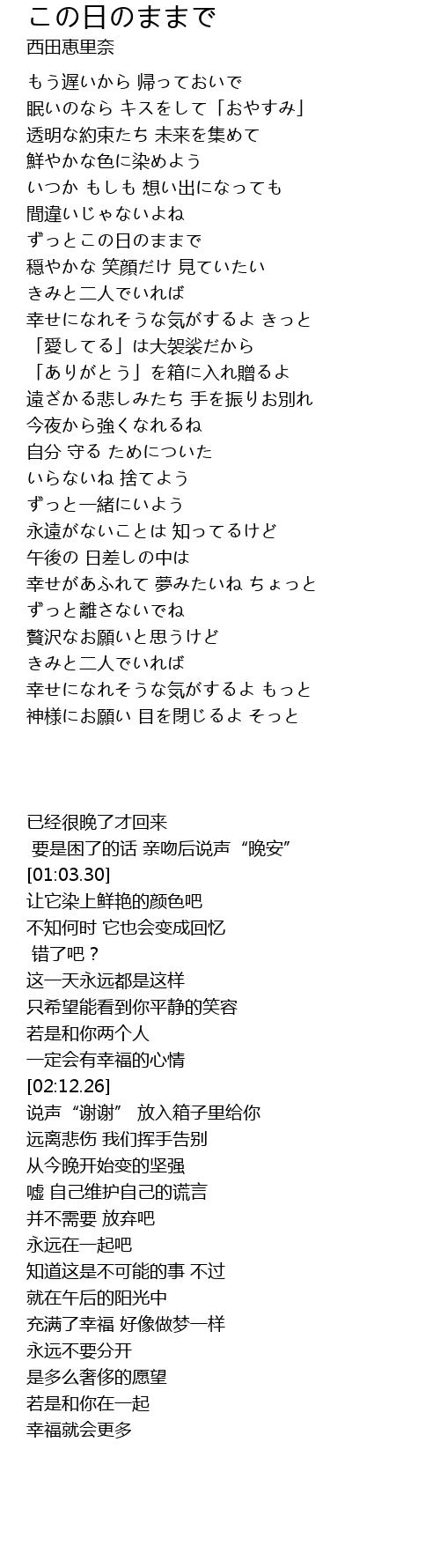 | [01:32.57] | ずっとこの日のままで |
