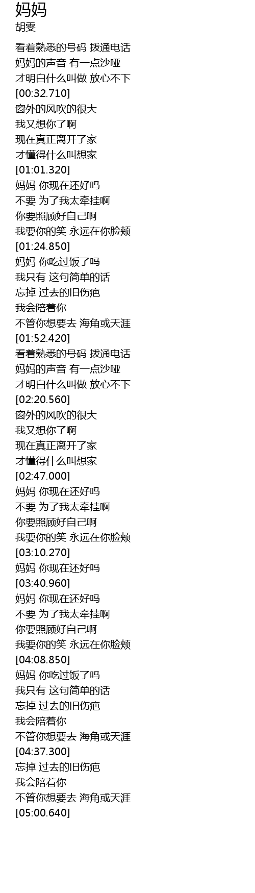 | [03:46.230] | 妈妈 你现在还好吗 |