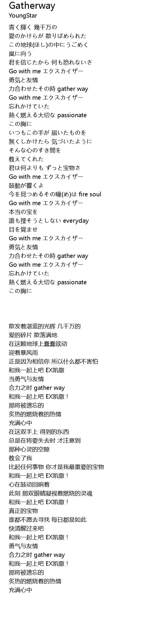 | [02:22.06] | 今を見つめるその瞳(め)は fire soul |