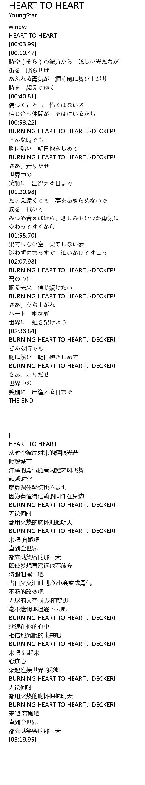 | [03:04.58] | BURNlNG HEART TO HEART,J-DECKER! |