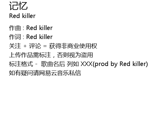 | 标注格式 - 歌曲名后 列如 XXX(prod by Red killer) | |