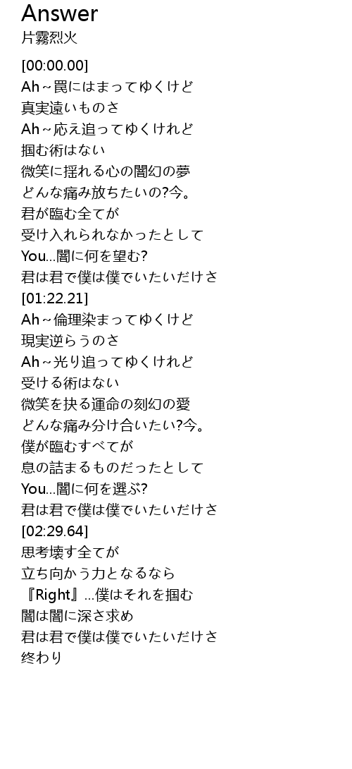 | [03:17.67] | 『Right』...僕はそれを掴む |
