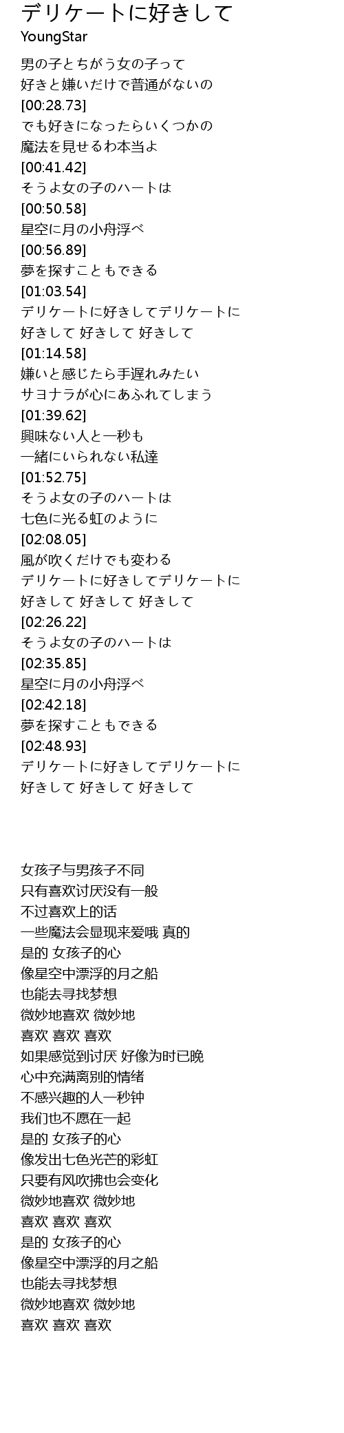 | [02:50.59] | デリケートに好きしてデリケートに |
