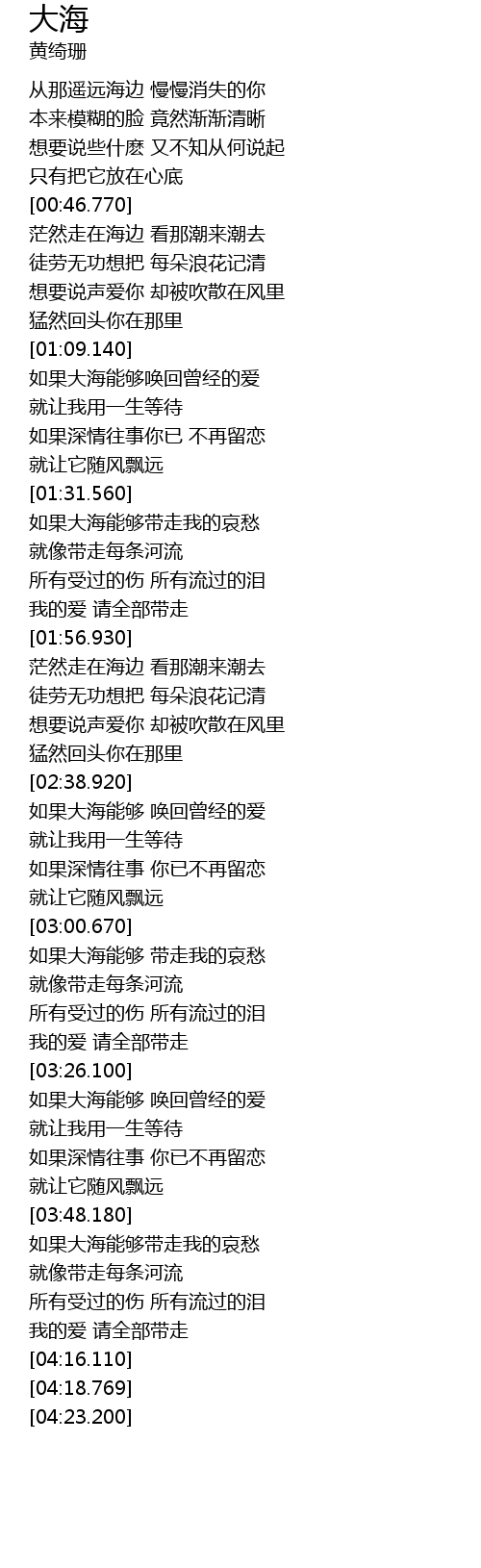 | [03:27.720] | 如果大海能够 唤回曾经的爱 |
