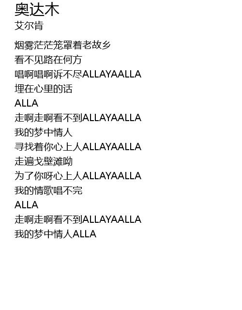 | [100:00.02] | 唱啊唱啊诉不尽ALLAYAALLA |