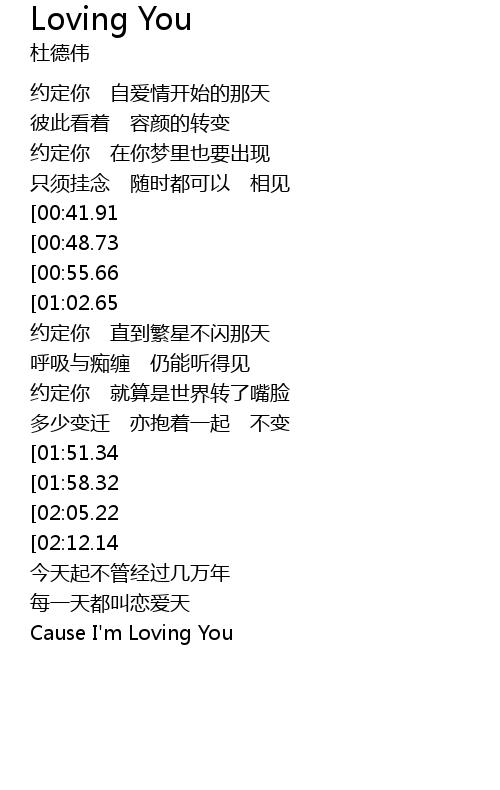 | [02:50.99][00:41.91] | Cause I' m Loving You |