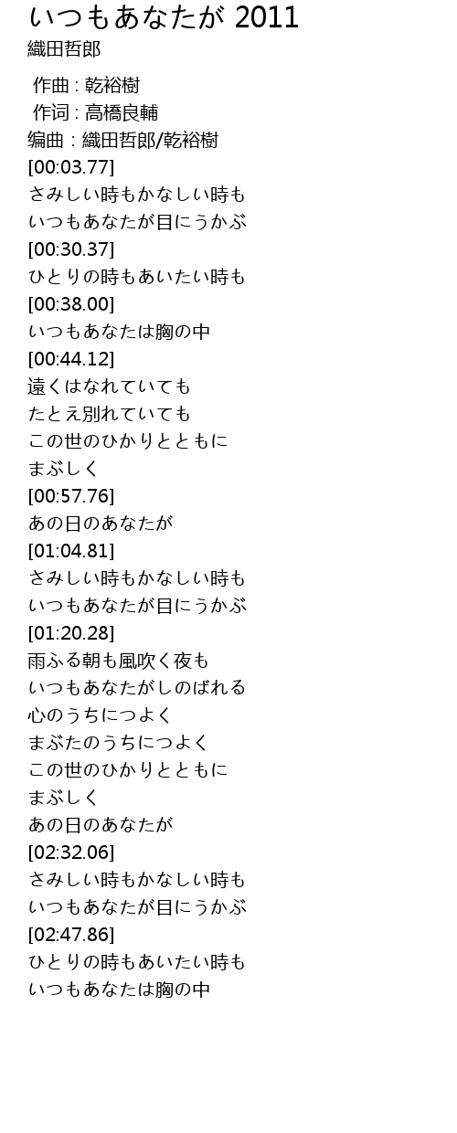 | [02:41.76] | いつもあなたが目にうかぶ |