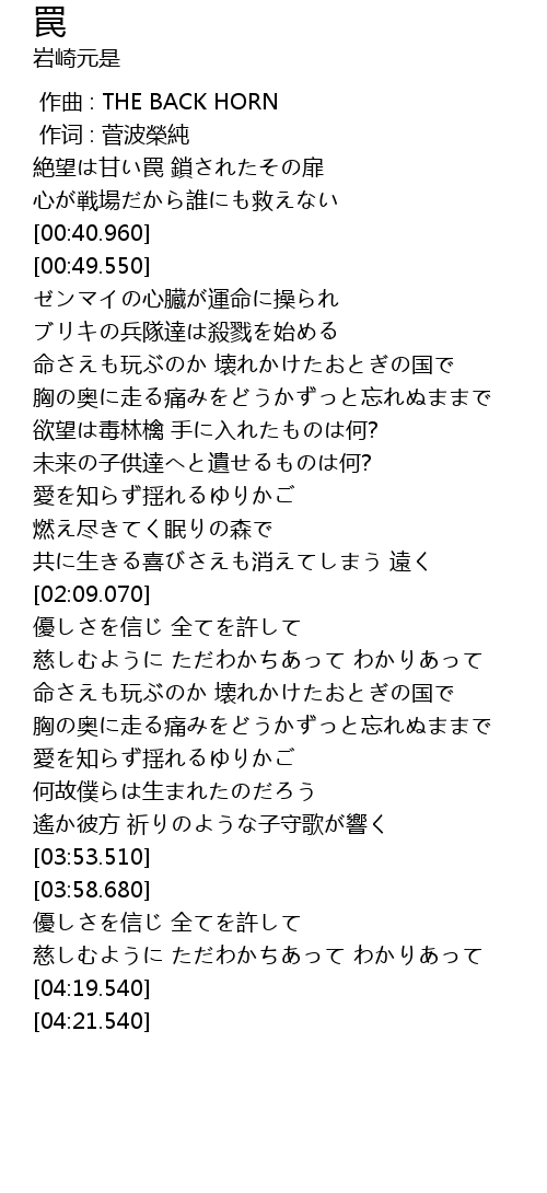 | [00:00.00] | 作曲 : THE BACK HORN |