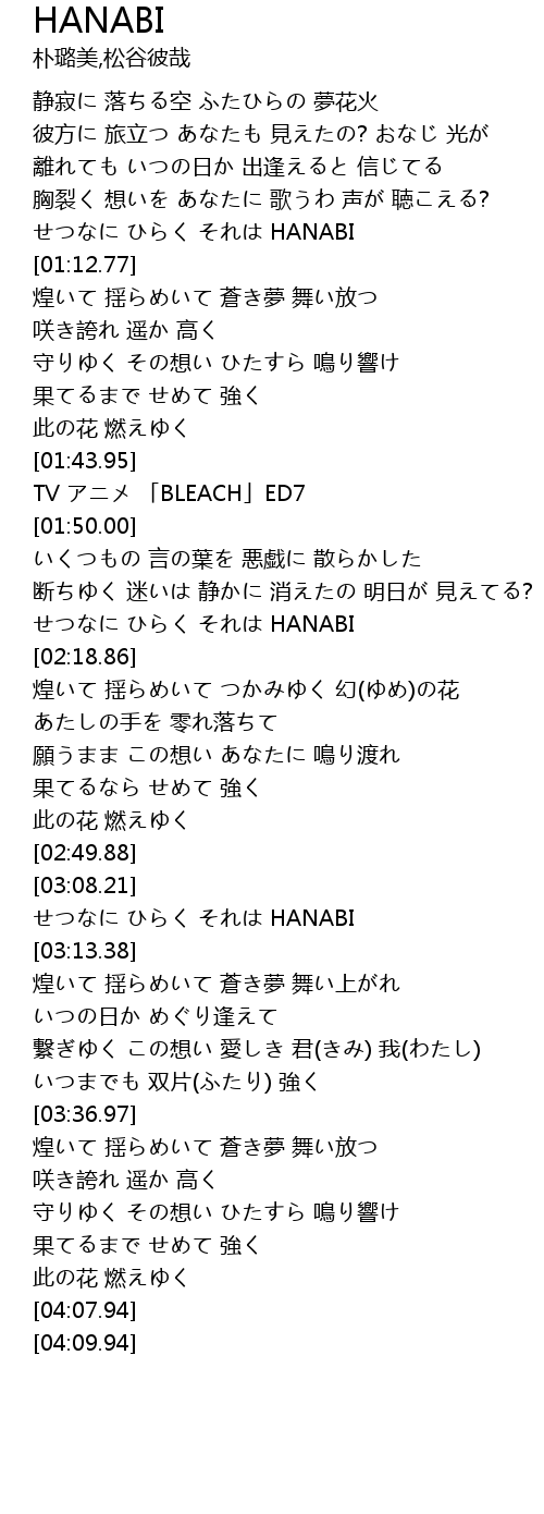 | [01:09.60] | HANABI |