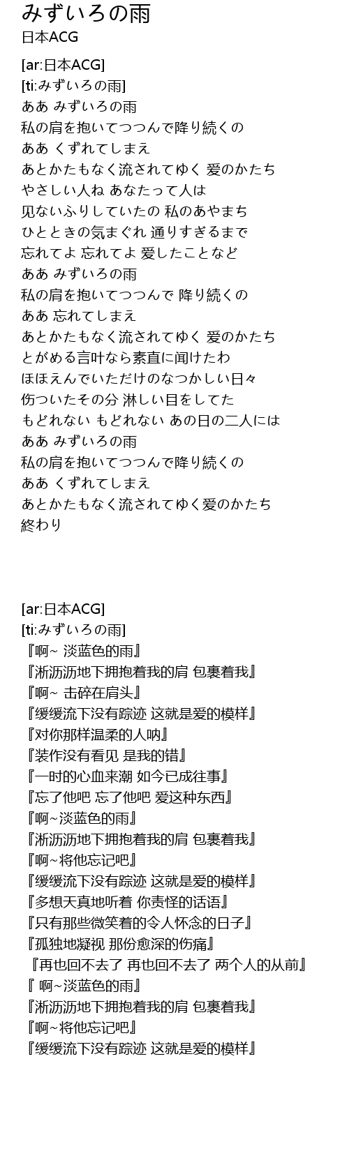 | [00:08.12] | 『啊~ 淡蓝色的雨』 |