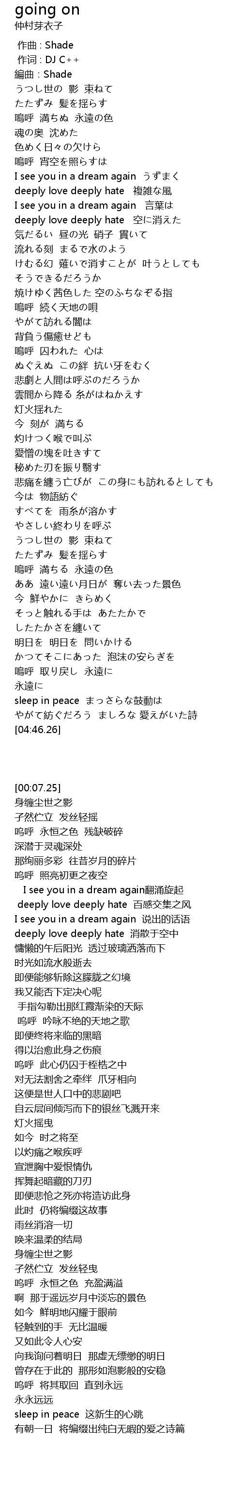 | 歌曲 | going on |