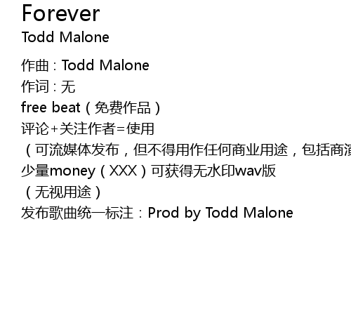 | 发布歌曲统一标注:Prod by Todd Malone |
