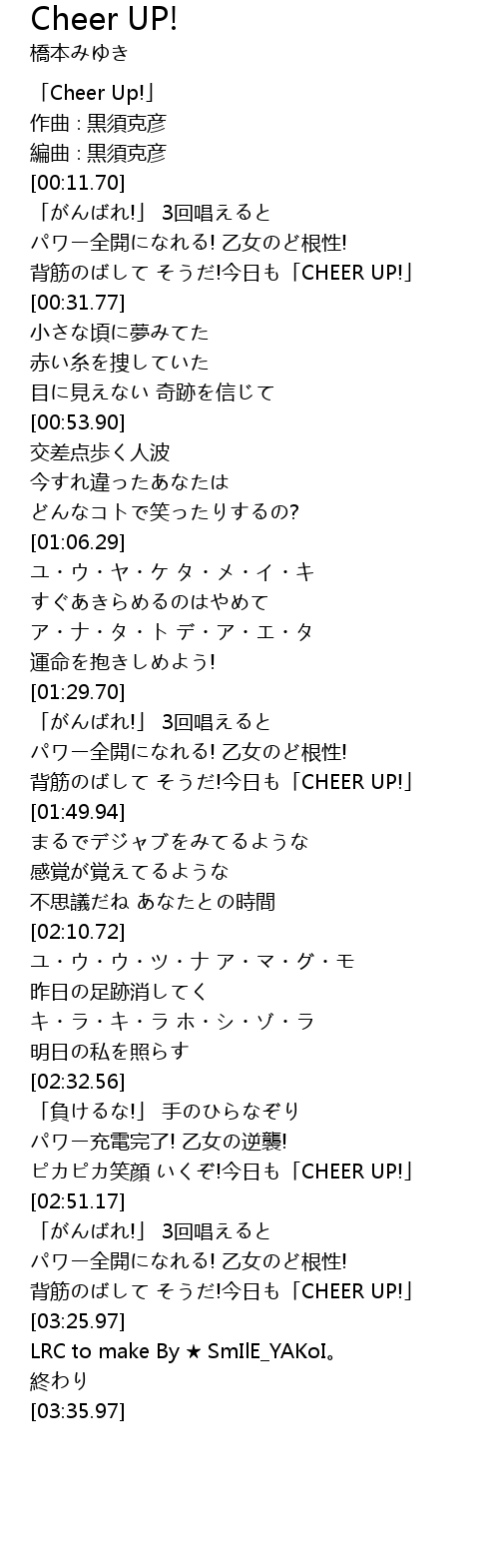 | [00:00.70] | 「Cheer Up!」 |