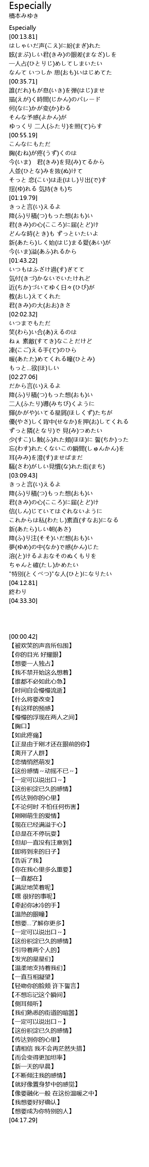 | [01:43.98] | いつもはふざけ過(す)ぎてて |