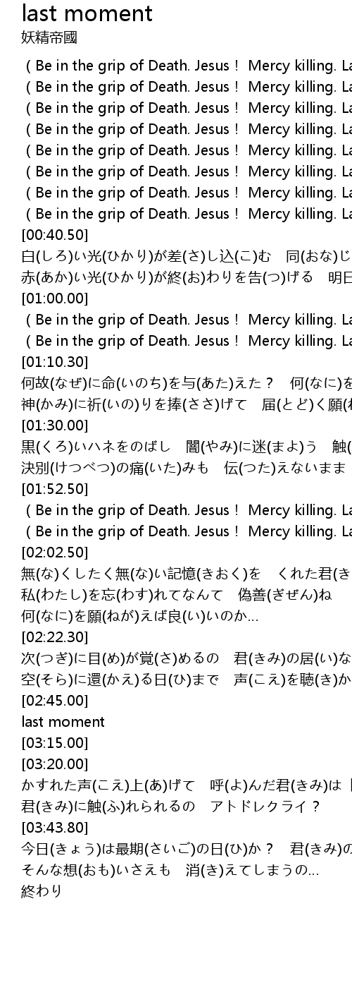 | [00:35.53] | (Be in the grip of Death. Jesus! Mercy killing. Last moment. ) |