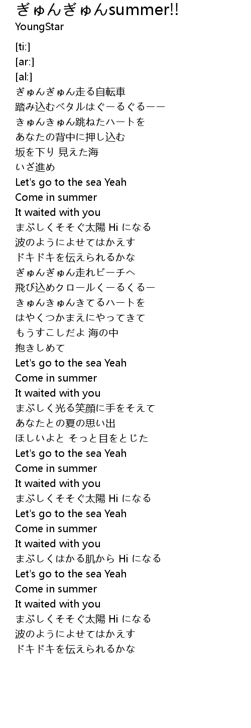 | [01:07.40] | ぎゅんぎゅん走れビーチへ |