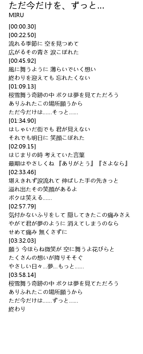 | [04:17.21] | ただ今だけは……ずっと…… |