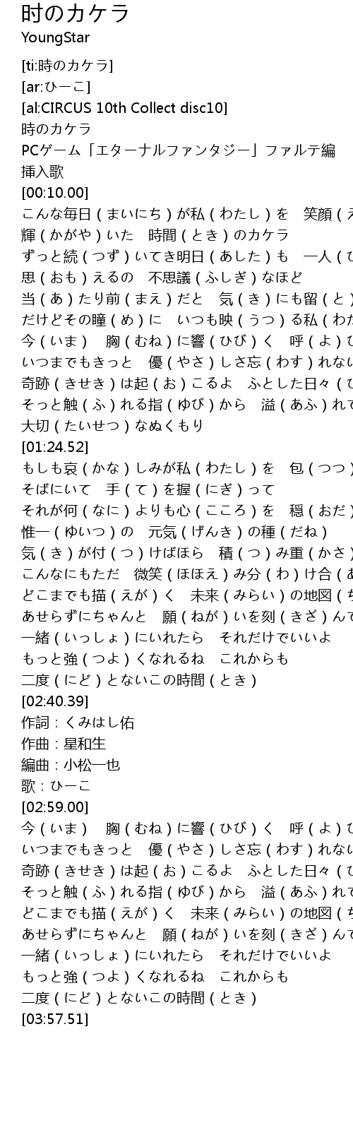 | [00:20.36] | 輝(かがや)いた 時間(とき)のカケラ |