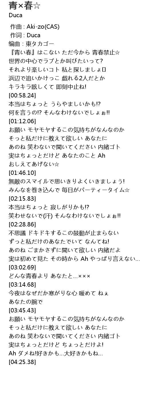 | [03:03.20] | どんな青春より あなたと…××× |