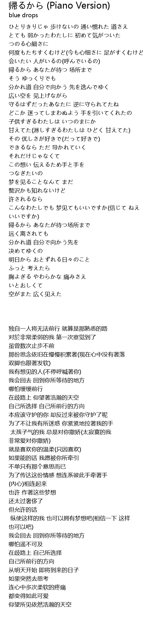 | 歌曲 | 帰るから (Piano Version) |