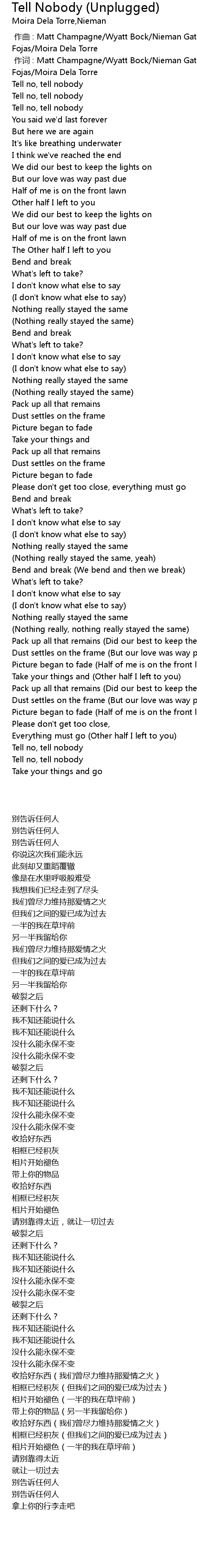 | 歌曲 | Tell Nobody (Unplugged) |
