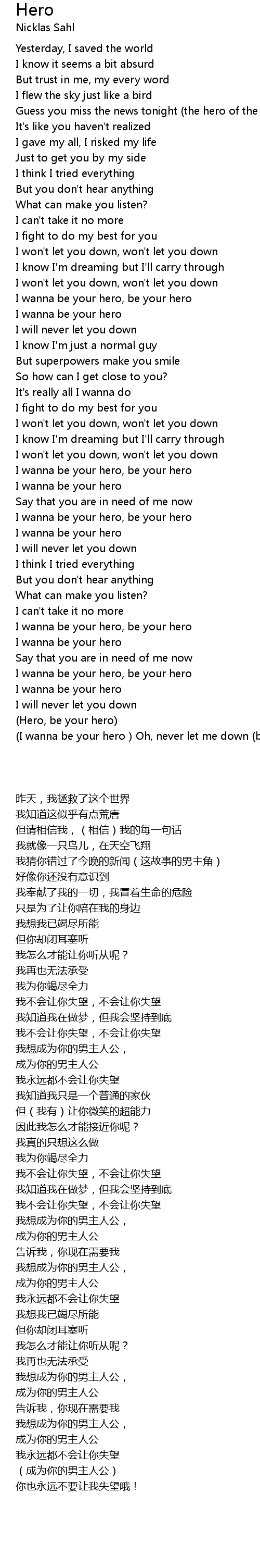 | [03:06.32] | I wanna be your hero Oh, never let me down be your hero |