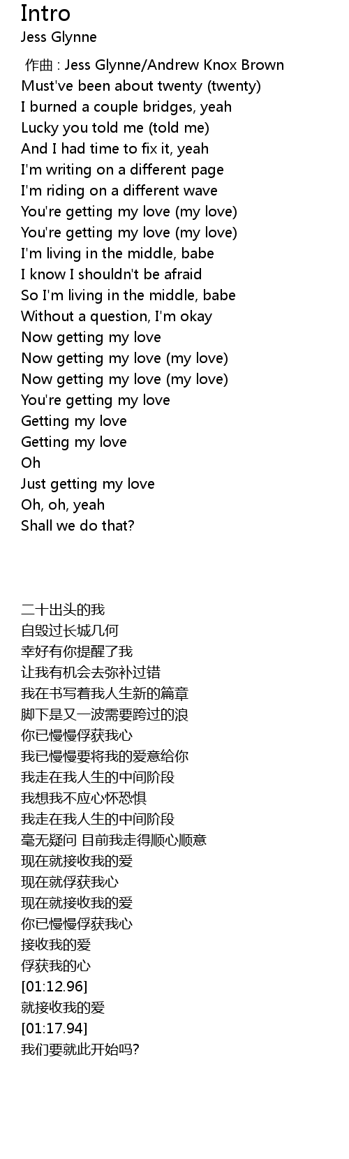| [01:08.50] | Getting my love |