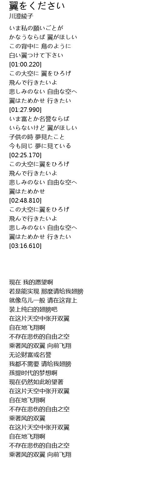 | [00:23.050] | かなうならば 翼がほしい |