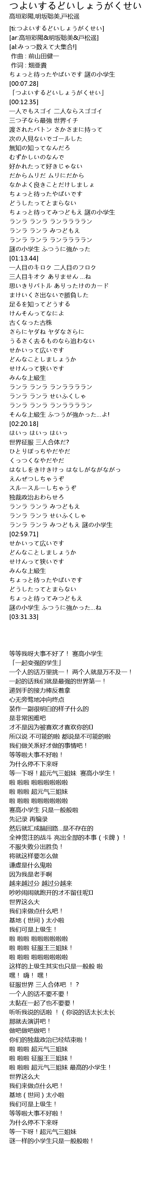 | [00:50.54] | ちょっと待ってみつどもえ 謎の小学生 |