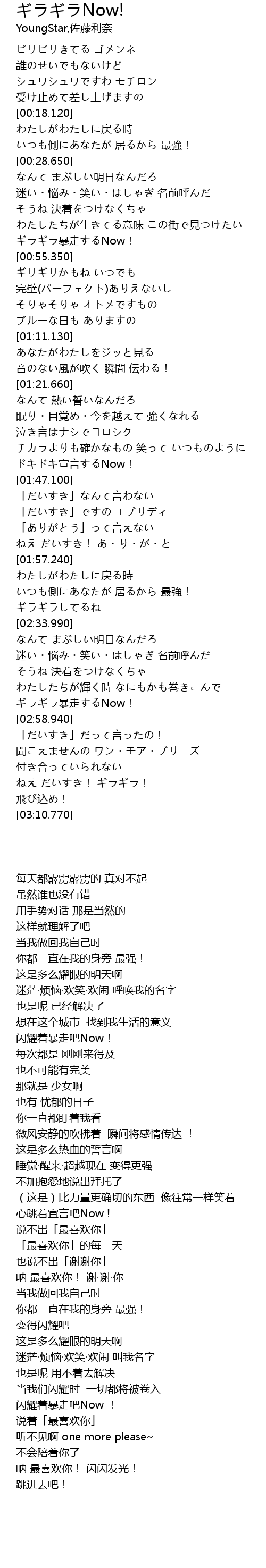 | [02:56.510] | ギラギラ暴走するNow! |