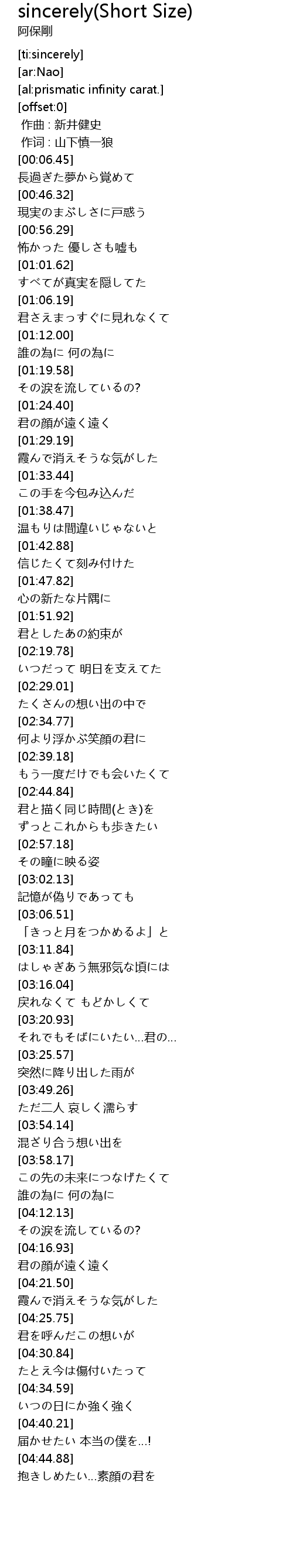 | [04:45.77] | 抱きしめたい…素顔の君を |