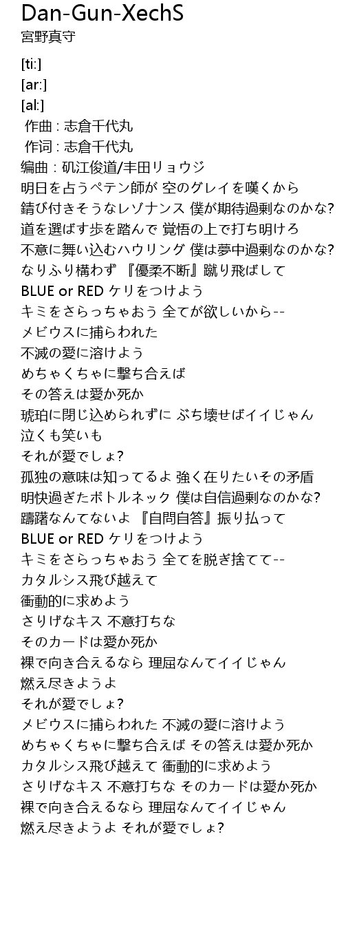 | [03:02.29] | めちゃくちゃに撃ち合えば その答えは愛か死か |