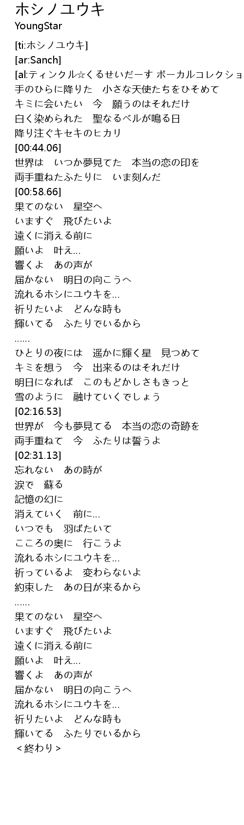 | [00:39.11] | 降り注ぐキセキのヒカリ |