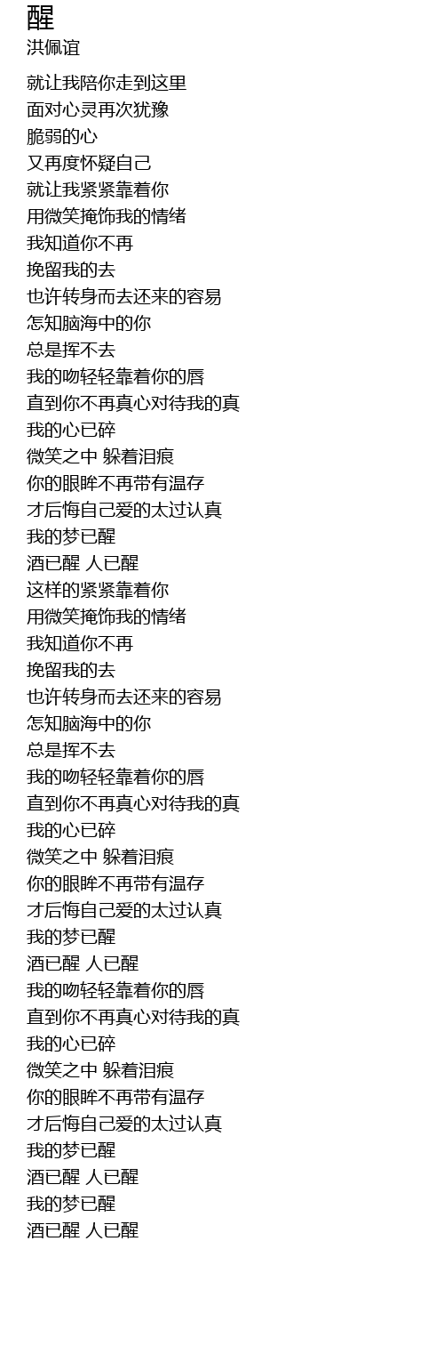 | [01:16.230] | wǒ de mèng yǐ xǐng |