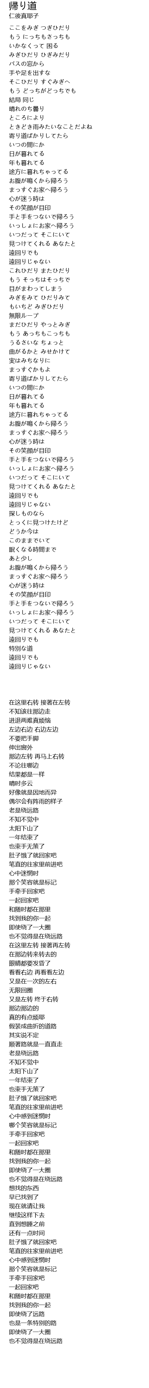 | 歌曲 | 帰り道 |