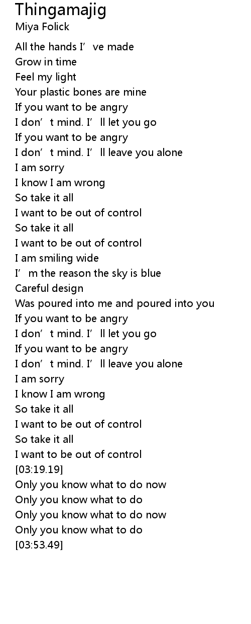 | [00:45.44] | Your plastic bones are mine |
