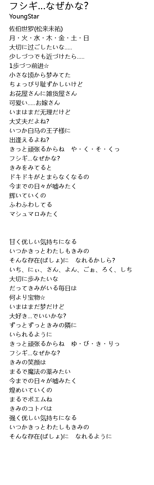 | 歌曲 | フシギ…なぜかな? |