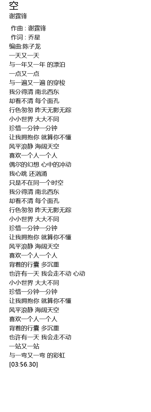 | [03:20.35] | 风平浪静 海阔天空 |