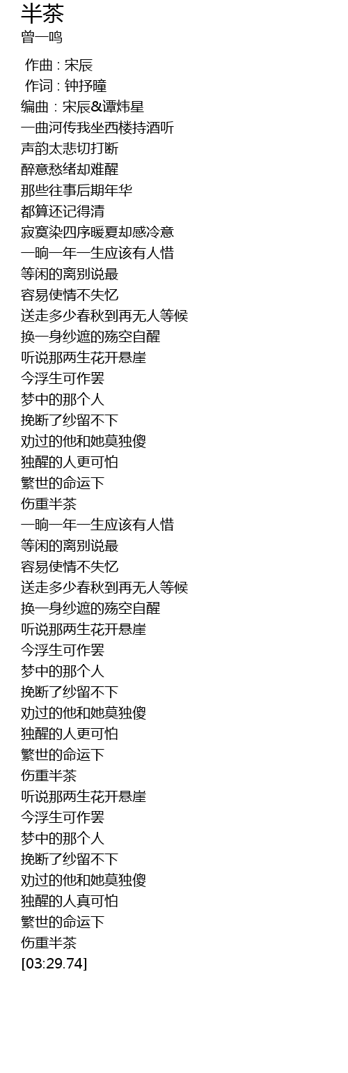 | [03:15.72] | 劝过的他和她莫独傻 |