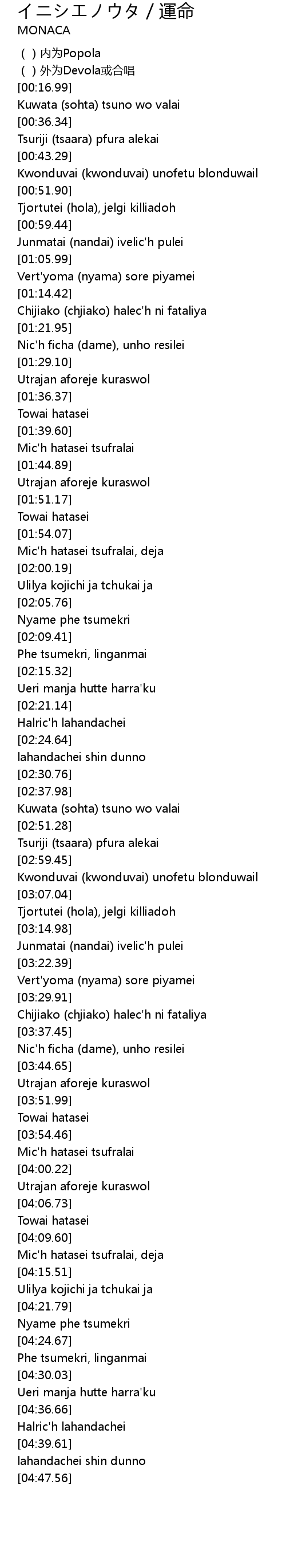 | [02:00.74] | Ulilya kojichi ja tchukai ja |