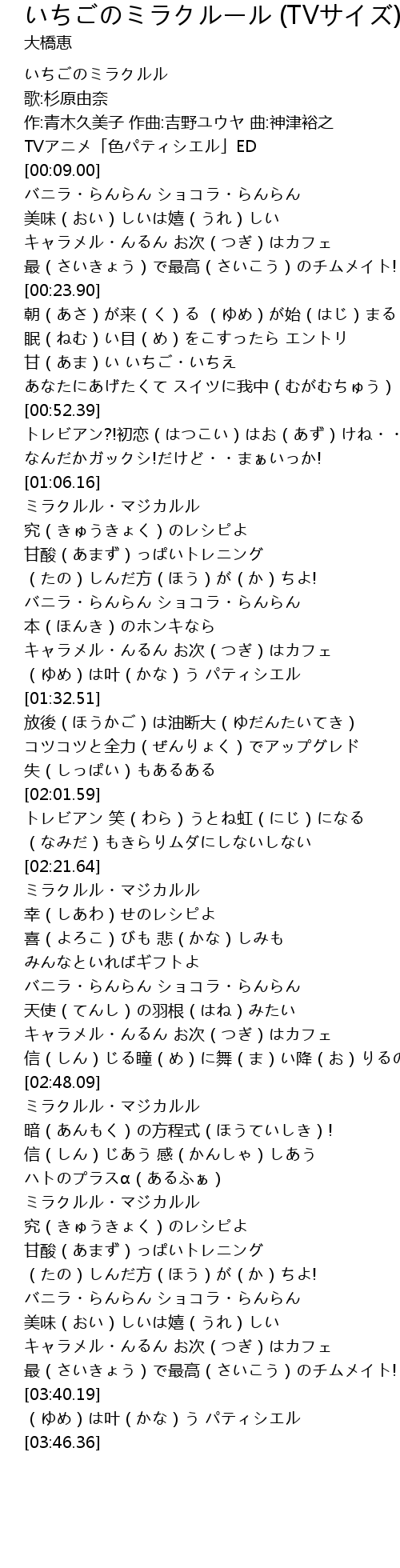| [00:43.18] | 甘(あま)い いちご・いちえ |