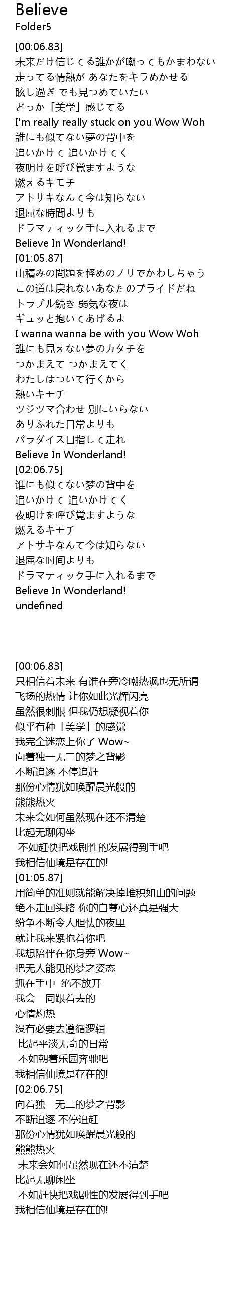 | [02:01.73] | Believe In Wonderland! |