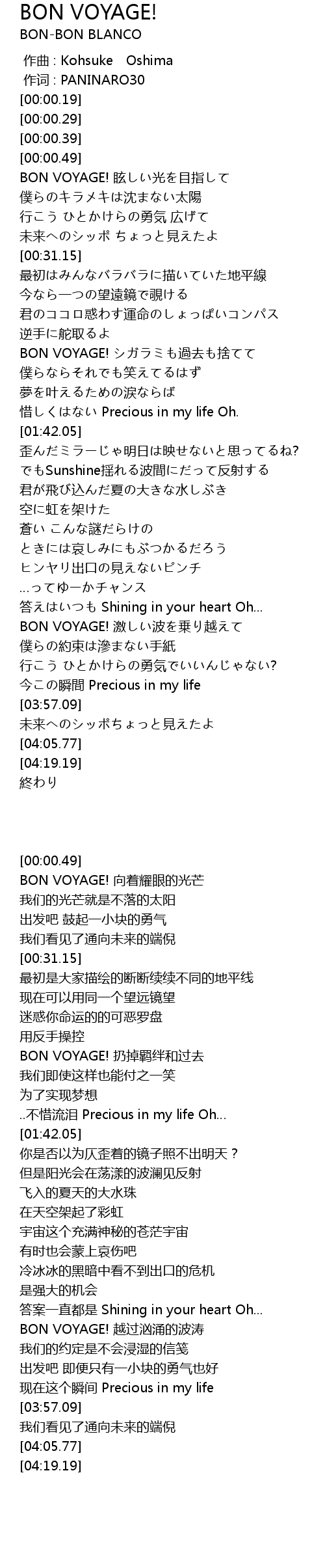 | [00:01.81] | BON VOYAGE! xuàn guāng mù zhǐ |