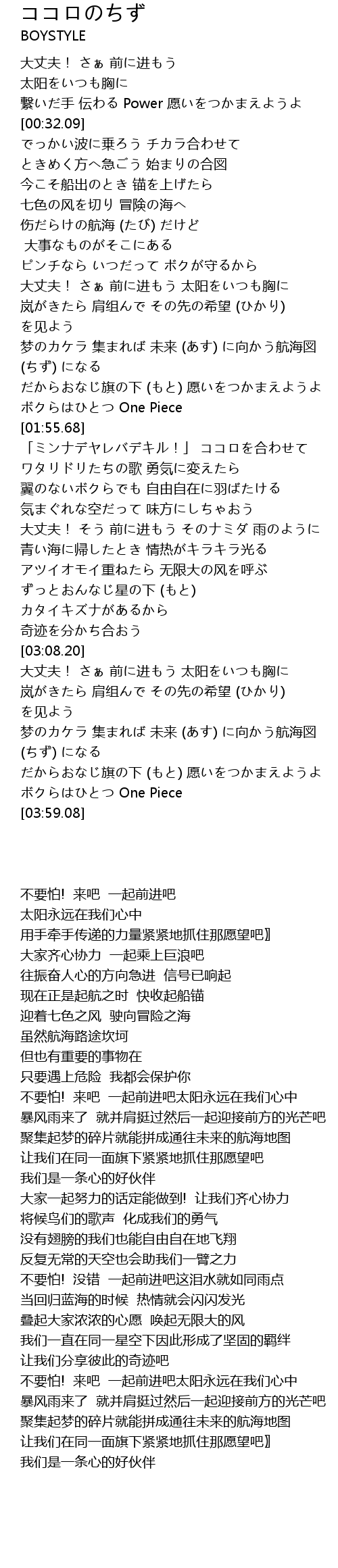 | [03:42.74] | 聚集起梦的碎片就能拼成通往未来的航海地图 |